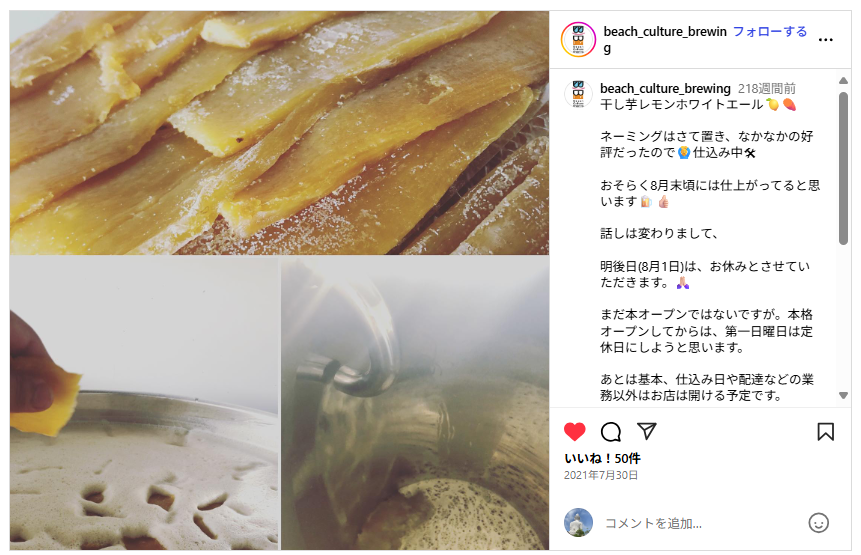 ホントに入れてるよね…きっと写真左下、干し芋をタンクに「ぽちゃんぽちゃん」ってしてるところっぽい!驚き…ホント飲んでおいて良かったー!いい意味でイモ感の主張はなく、私のわからんところで干し芋がビール全体のバランスとってるんだろうな、と。そしてレモンですよ、酸味。時間が経つたびに、あとからグッと酸味が来る。好き、こういうの私大好き!