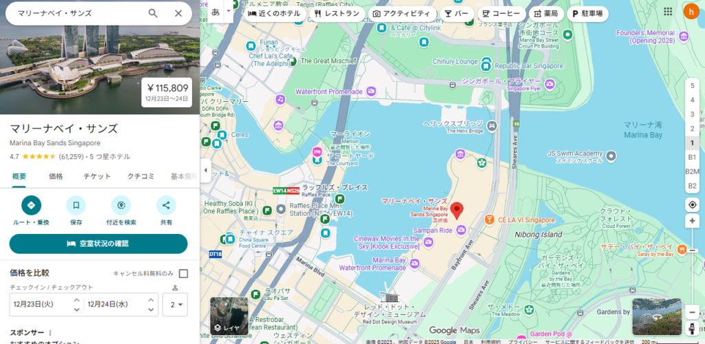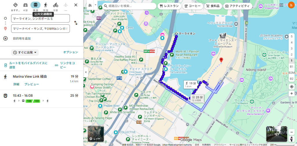 マーライオンとマリーナベイサンズの位置関係はこんな感じです👇