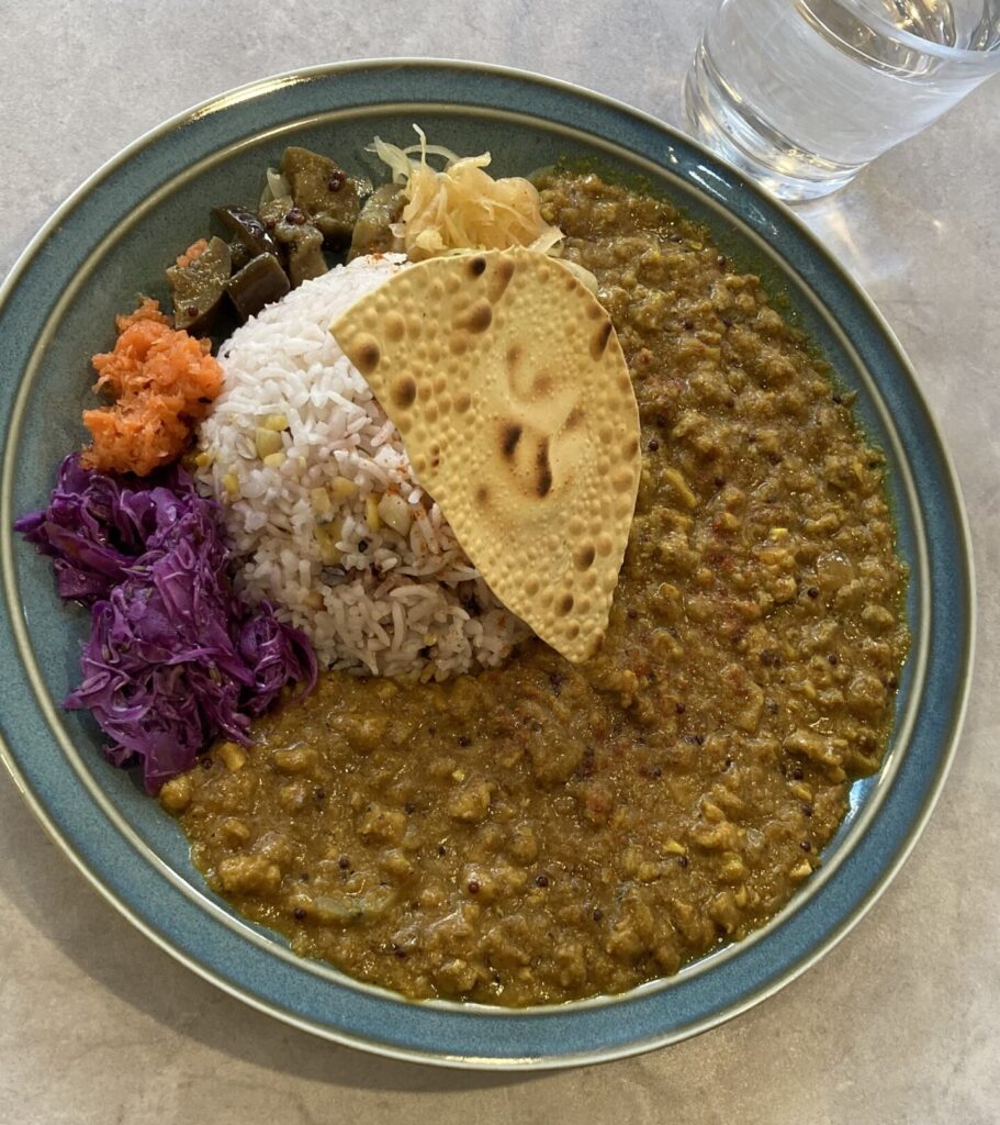 そして何より、カレーとお野菜おかずを本能の赴くままに自由に混ぜて食べるのが楽しい!シンガポール帯同中に出会ったミールスを思い出すーー!「自分で完成させる感」がなんとも心地よい。これは感動もの!