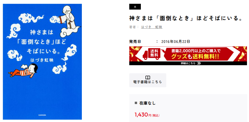 偶然出会ったスピリチュアル的要素の大きい本でしたが、こんな考え方も悪くないなぁって思えた本でした。なんか分からん神さまの存在、どこかで私のことを見ていたら「面倒くさい」を適度に提供してもろて。私も喜んで、経験値やレベルをUPさせますんで!